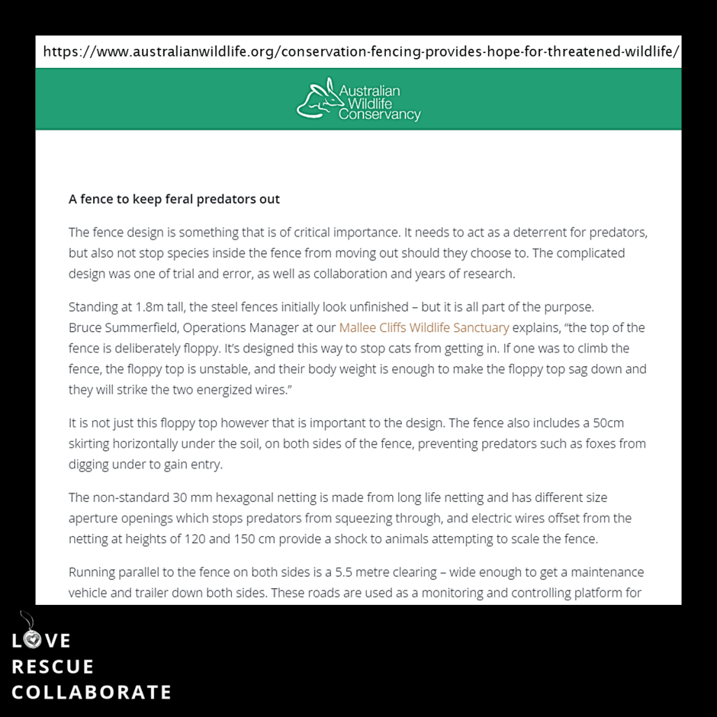Please note that the LRC team supports and promotes cat enclosures, and supports our native wildlife.