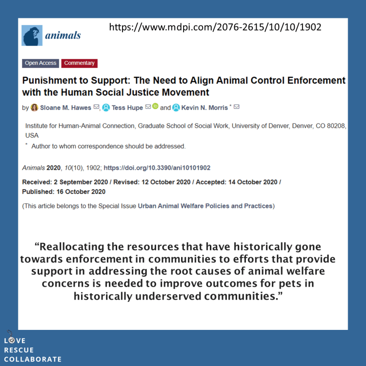 MDPI, Animals, Punishment to Support: The Need to Align Animal Control Enforcement with the Human Social Justice Movement
