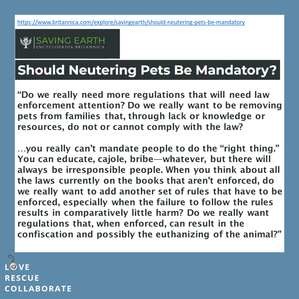 NO from Encyclopedia Britannica Saving Earth, Andrea Toback on Should Neutering Pets Be Mandatory?