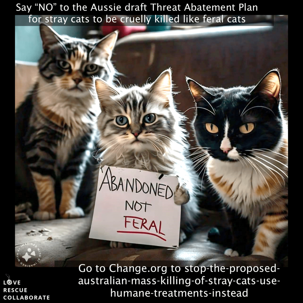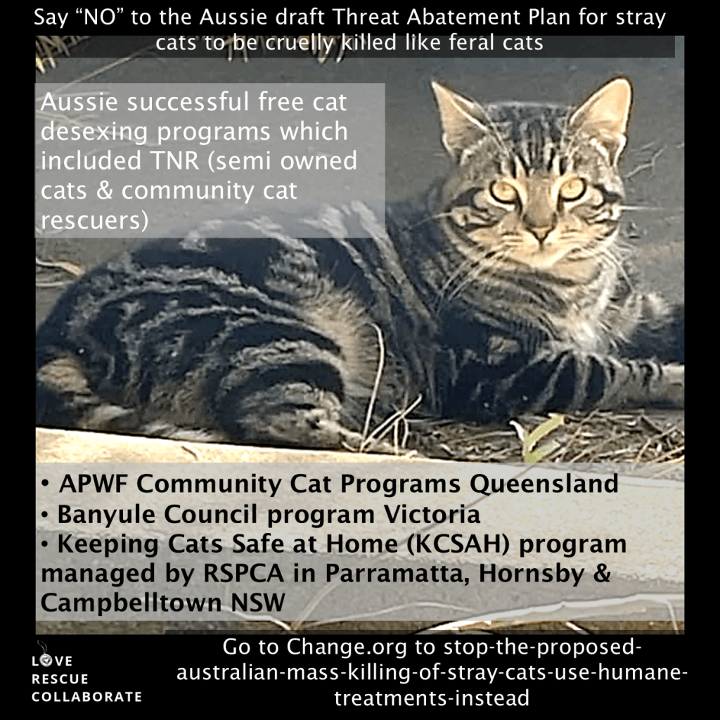 Sign our petition for humane methods such as mass desexing & TNR are used instead of trapping & eradicating ALL stray cats: https://www.change.org/p/stop-the-planned-australian-eradication-of-all-stray-cats-they-are-not-feral-cats