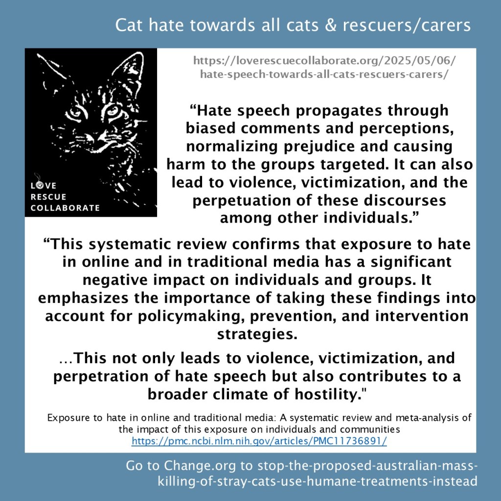 Updated October 2025 Hate speech towards groups of people is well known, but how did it become disturbingly acceptable towards all cats in Australia and their rescuers & carers, and even cat owners?