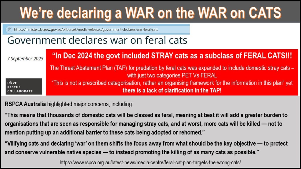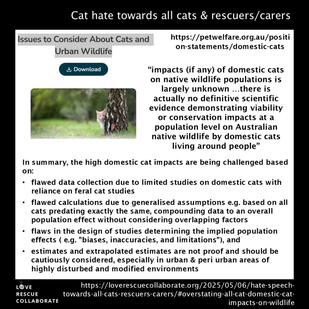 Tired of the overstated impacts of cats, the misunderstanding information, the demonising almost hysterics against domestic cats? We are starting to build a kitbag / tool kit to help cat owners, supporters, rescuers & carers raise their voices & call out where Aussie domestic cats are being targeted with cat hate.