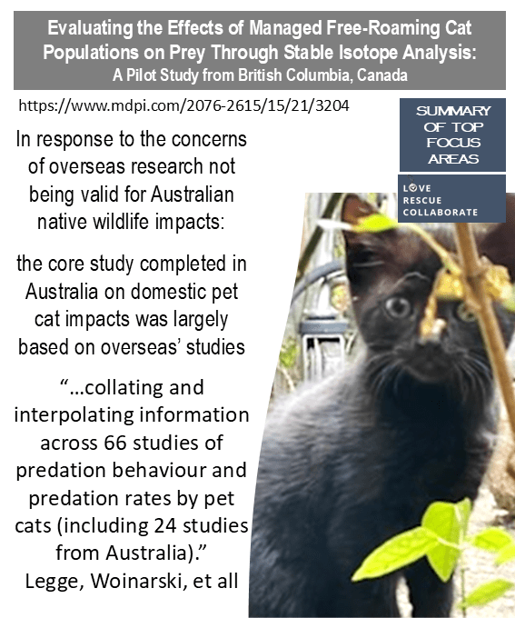 This research provides the proof / evidence that managed colonies including TNR (desexing and returning to a location) and feeding, assist with minimising impacts to wildlife.