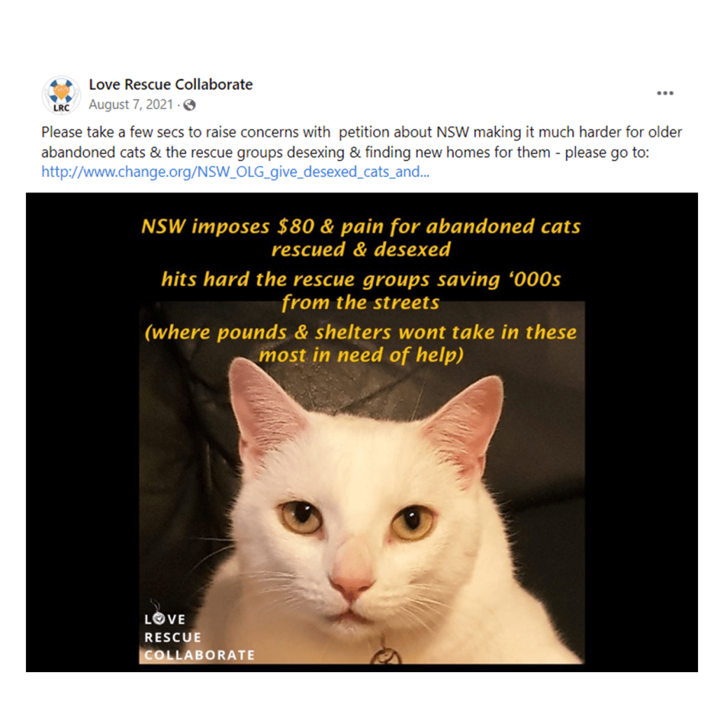 Please note that the LRC team supports and promotes cat enclosures, and supports our native wildlife.