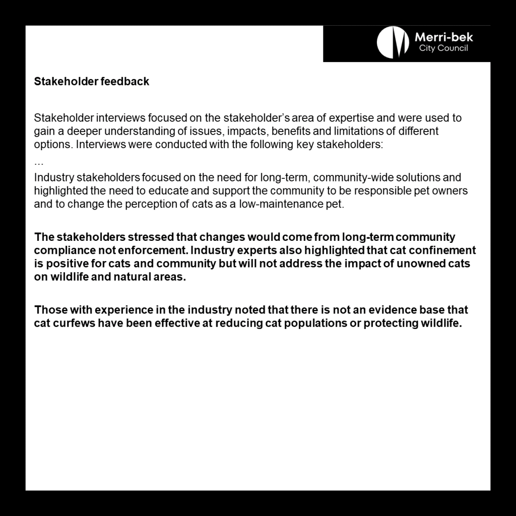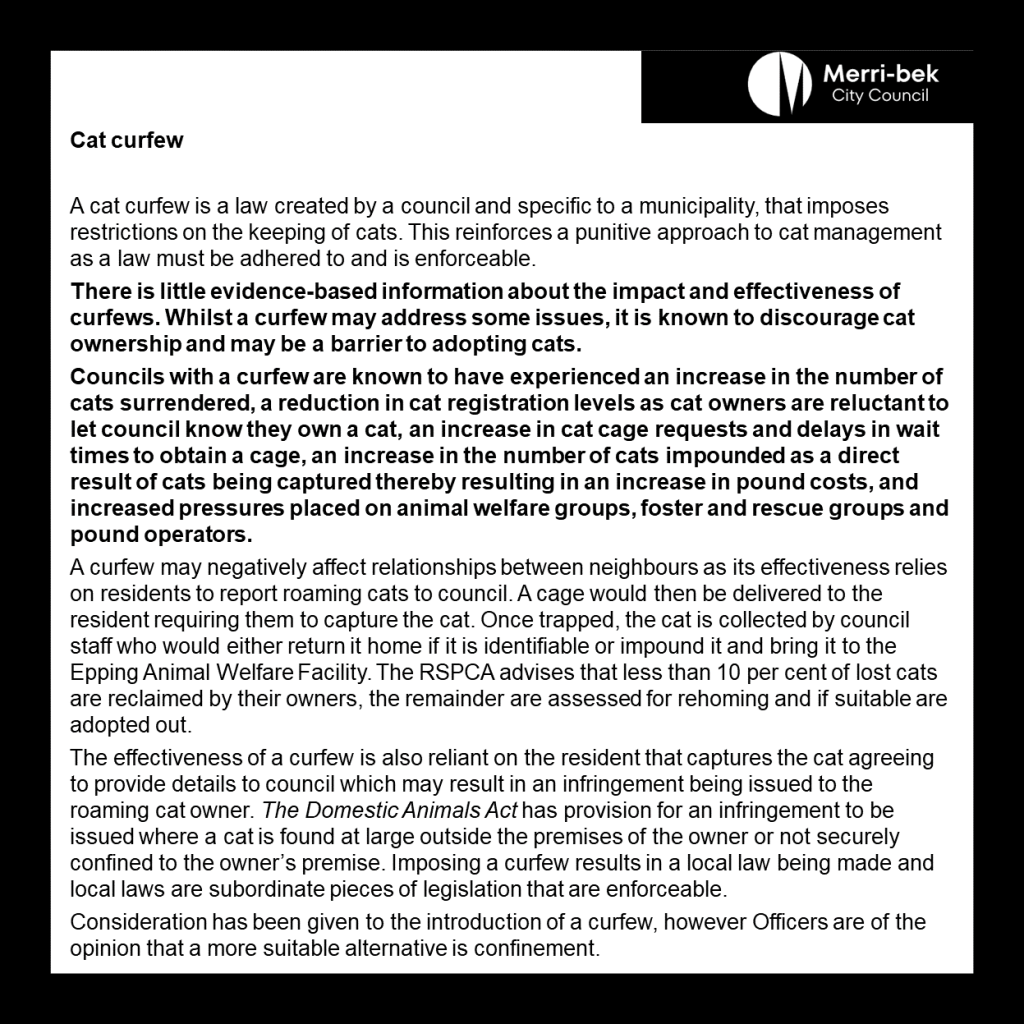 The study also relies on overseas studies which involve situations on islands. Islands with cat management issues have very specific conditions and attributes, and do not suffer from the “vacuum effect”. Doesn’t the Mandurah situation have its own specific conditions and attributes, as would the city / CBD area too?